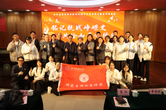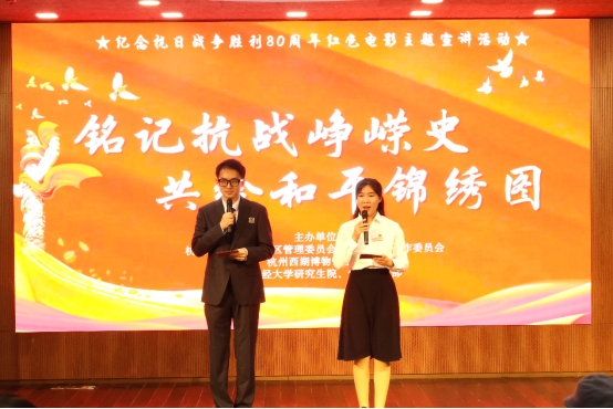 为纪念中国人民抗日战争暨世界反法西斯战争胜利80周年,缅怀抗战先烈、传承红色基因,11月25日,我校研究生理论宣讲团携手杭州西湖博物馆总馆,共同举办“铭记抗战峥嵘史,共绘和平锦绣图”纪念抗日战争胜利80周年红色电影主题宣讲活动。