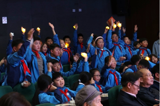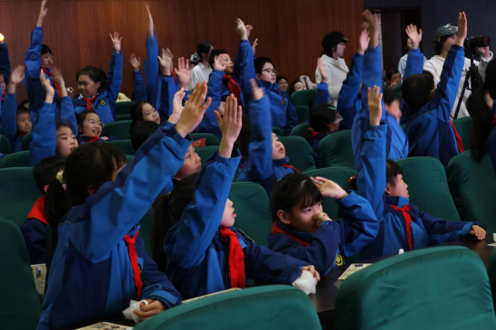 有奖问答融知识性与教育性于一体,现场围绕南京大屠杀死难者国家公祭、遇难同胞、国际友人援华等内容进行互动交流。同学们积极思考、踊跃作答,在互动中巩固历史记忆,深化对和平的理解。合唱环节则将现场氛围推向高潮,在宣讲团成员汪莎梦的领唱下,同学们点亮手中的五角星小灯,齐声唱响《让世界充满爱》,悠扬的歌声中,传递出对和平的珍视与对美好未来的向往。