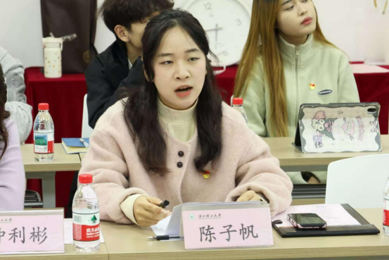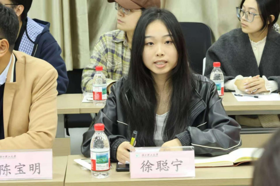 随后,两校宣讲团召开座谈交流会。浙江理工大学“红研青锋”硕博宣讲团团长陈子帆、红信讲习团团长樊怡婷,分别围绕团队组织架构、宣讲模式创新、实践活动开展及成效转化等核心内容作系统阐述,我校研究生理论宣讲团团长徐聪宁聚焦“学-研-践-传”新模式,分享了团队在理论深度阐释、宣讲案例打磨、基层精准传播等方面的实践经验与丰硕成果。
