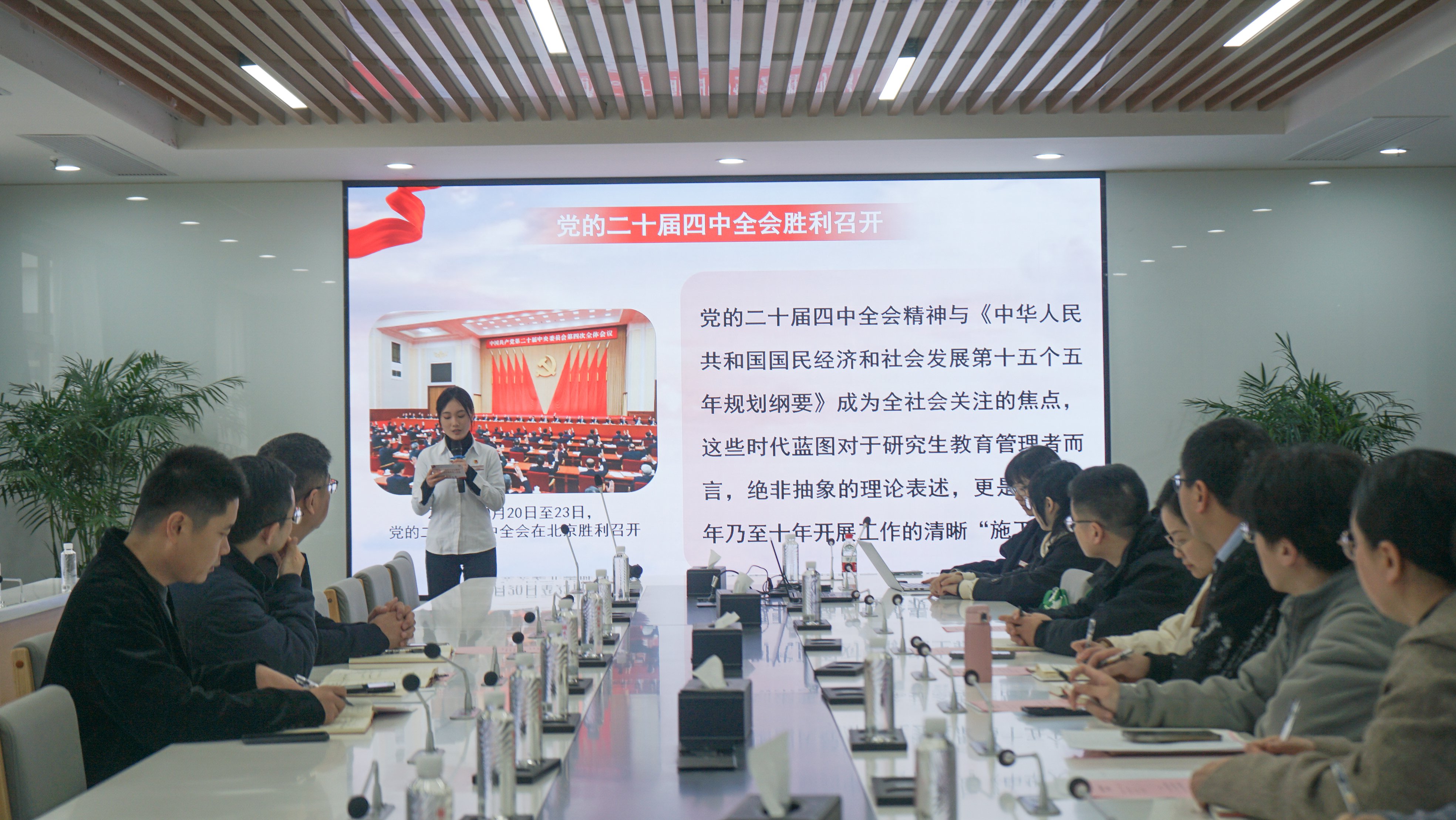会议邀请研究生理论宣讲团成员作党的二十届四中全会精神专题宣讲,结合研究生教育管理实践,对会议精神作了深入解读。会议还围绕习近平总书记2026年全国两会重要讲话精神、习近平总书记关于树立和践行正确政绩观的重要论述等内容开展专题学习。陈远高强调,要将系列讲话精神落实到研究生培养全过程,推动研究生教育内涵式发展,实现党建与育人工作深度融合。