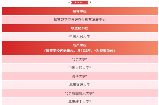 联盟在教育部学位与研究生教育发展中心的指导下,由中国人民大学发起成立,截至目前已有133所高校成为联盟成员单位。该联盟旨在团结全国高校研究生工作部门,紧紧围绕为党和国家事业发展“培养造就大批德才兼备的高层次人才”目标,深化改革创新,推动内涵发展,共同探索新形势下加强和改进研究生党建和思想政治工作的思路举措,通过一系列高水平工作论坛、高质量调查研究、高层次人才交流、高标准主题活动等,形成一批可复制可推广的建设经验,打造勠力同心、团结奋斗、携手共进的育人共同体,为培养担当民族复兴大任的时代新人贡献力量。
