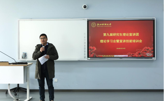 3月19日,我校研究生理论宣讲团2026年第一期理论学习会暨宣讲技能专题培训会在A107B会议室举行。党委研工部副部长金国锋,指导教师郑珺、廖丁瑶及宣讲团全体成员参加会议。会议由党委研工部陈宝明主持。