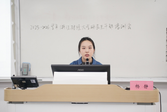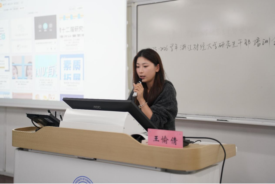 校研究生会办公室负责人李默默、新媒体部负责人王愉倩分别作了财务报销技能和新媒体编辑等相关技能培训。