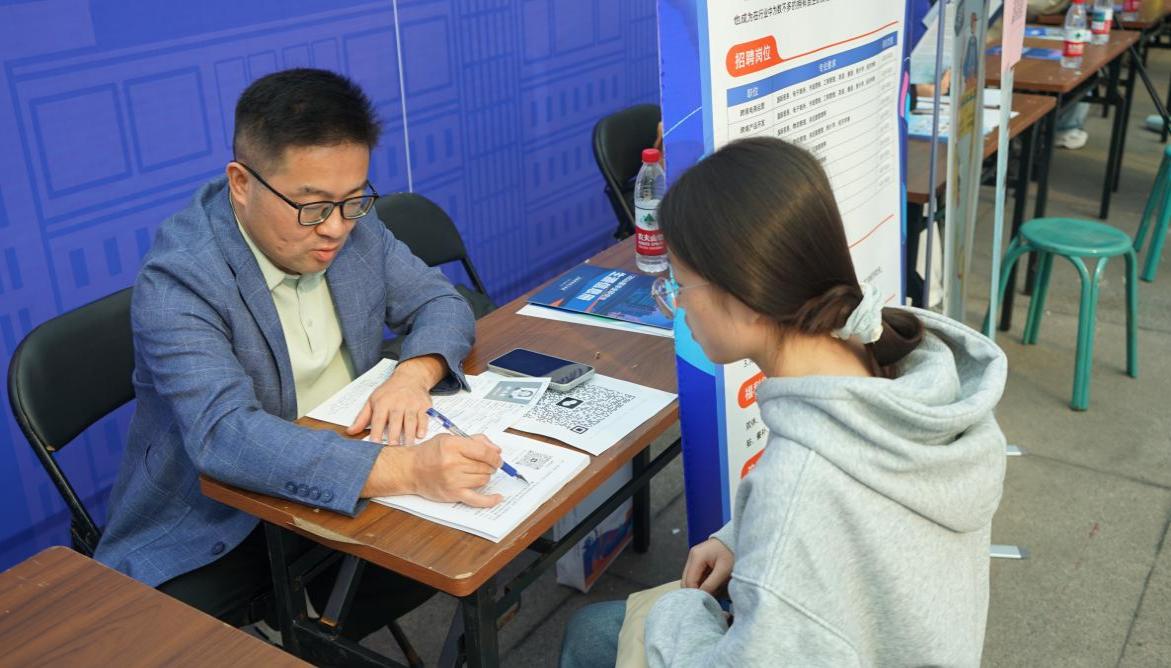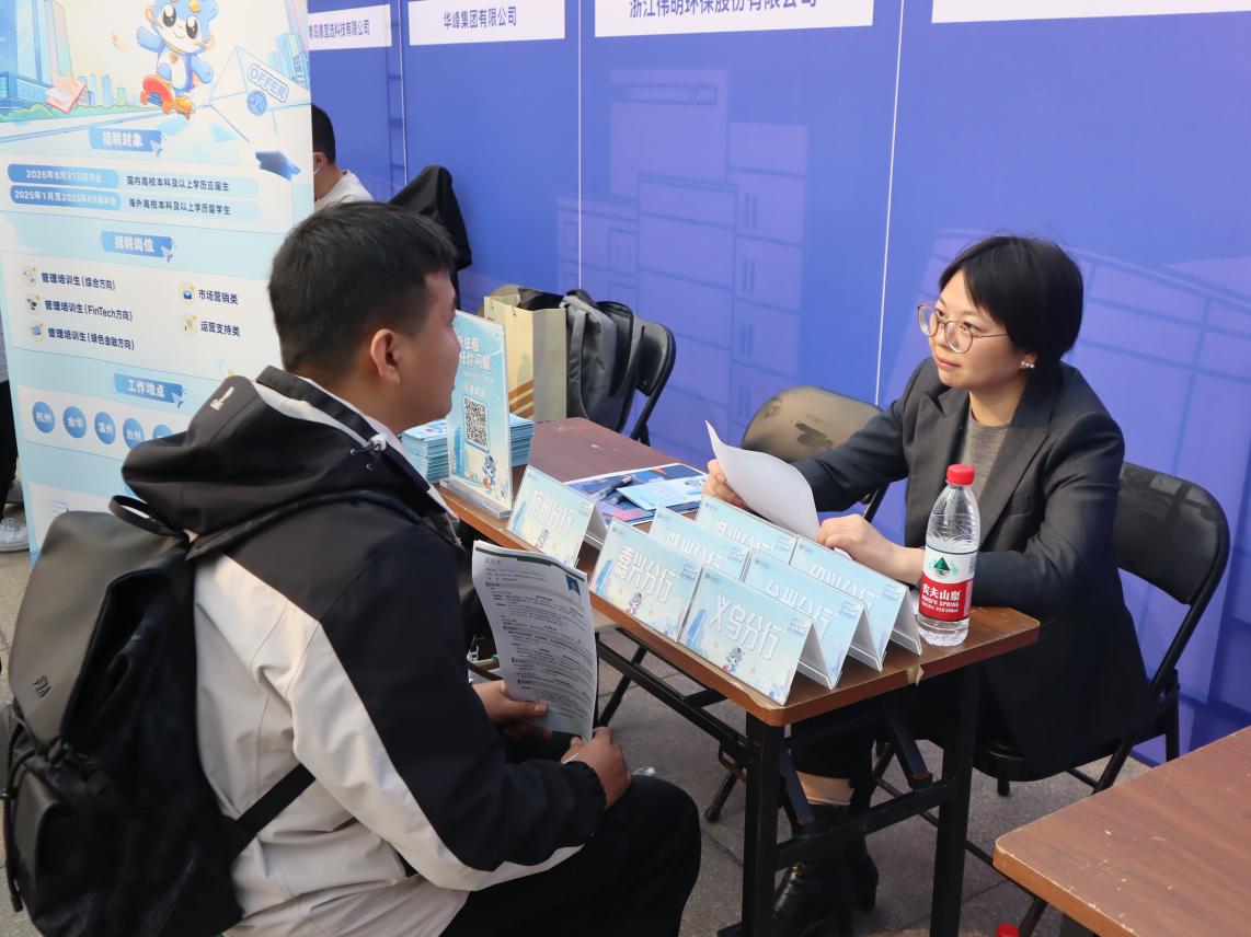 “母校学子专业素养扎实、岗位适配度高,我就是受益者。这次回来招聘,看到学弟学妹们饱满的求职热情,十分感慨,也由衷期盼能有更多同学在专业领域实现长远发展。” 我校2023届金融专业本科毕业生、中信证券有限公司HR华经理说道。
