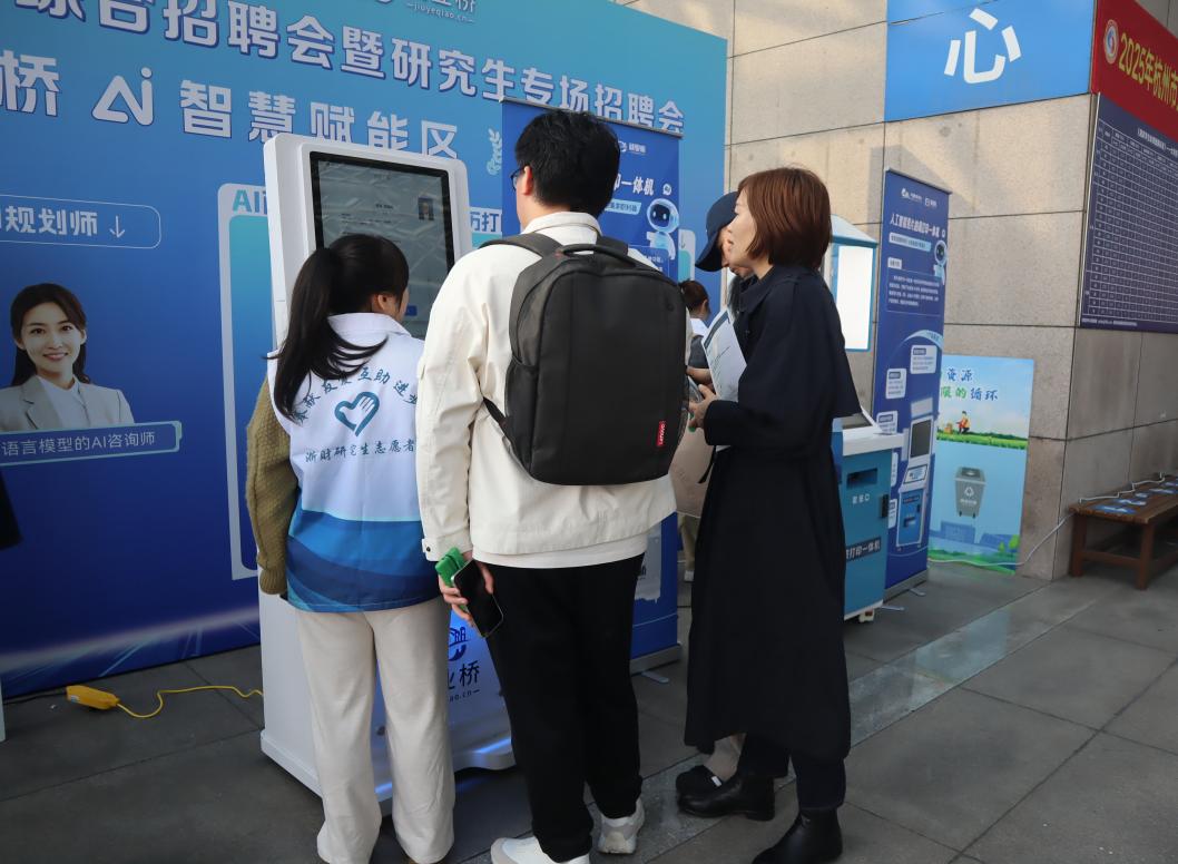 招聘会还设置了“导师面对面”服务专区,结合学生需求进行一对一现场指导;开辟了职场赋能专区,为毕业生免费提供就职形象设计、毕业照片拍摄服务;引入了AI智慧机器人,为同学们免费提供模拟面试、简历生成等智慧就业指导服务,开辟了“公考咨询”、“出国指导”等专窗,全方位助力毕业生就职就业。