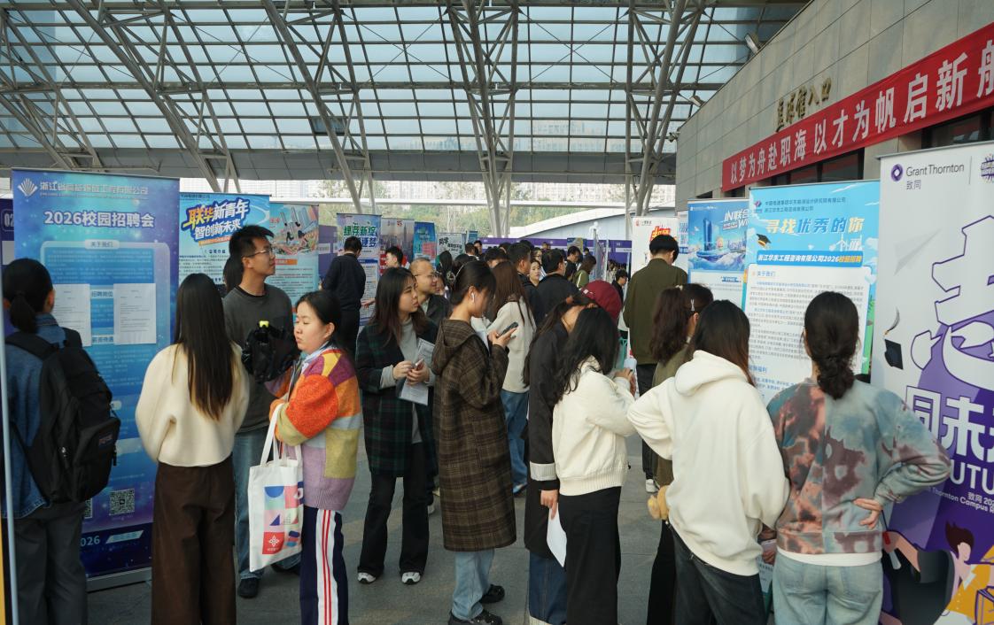 11月14日,2026届毕业生冬季综合招聘会暨研究生专场招聘会在下沙校区举行。校党委副书记徐晓东深入招聘会现场,详细了解参会企业数量、用人单位需求、毕业生薪资待遇等信息,并与用人单位代表和现场毕业生亲切交流。研究生院、学生处等相关职能部门负责人、各学院分管学生工作副书记和毕业班辅导员等参加招聘会。