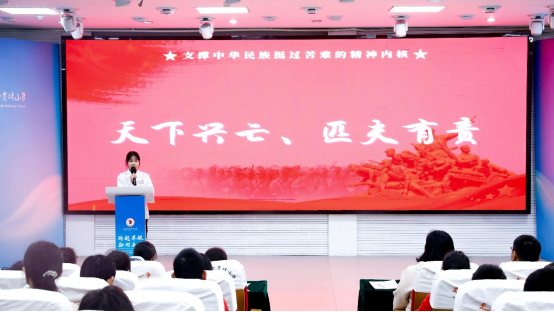 宣讲环节,宣讲团成员王茴以“勇气小测试”互动方式开场,结合电影《生死阻击》片段,将现场师生思绪拉回80多年前硝烟弥漫的抗日战场,共同回望那段山河飘摇、热血激荡的峥嵘岁月。她深情讲述了左权将军的家国情怀、小英雄雨来的不屈气节以及陈嘉庚先生的爱国之举,阐释了抗战精神中“天下兴亡、匹夫有责”的爱国情怀、“视死如归、宁死不屈”的民族气节、“不畏强暴、血战到底”的英雄气概和“百折不挠、坚韧不拔”的必胜信念。