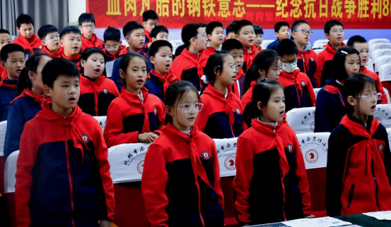 随后,同学们踊跃分享自己战胜困难的实际经历,展现新时代少年的勇气与成长。在合唱《半生雪》环节,全场用歌声表达对先烈的缅怀与敬意。有奖问答进一步活跃气氛,寓教于乐,加深了对抗战精神的理解。