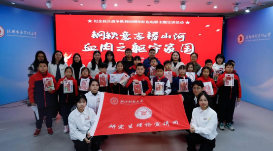 12月9日,我校研究生理论宣讲团走进杭州市南肖埠小学,开展“钢铁意志铸山河,血肉之躯守家”——纪念抗日战争胜利80周年红色电影主题宣讲活动。南肖埠小学副校长翁乐、大队辅导员黄亚男,我校党委研工部陈宝明出席活动,南肖埠小学120余名学生代表参与此次活动。活动由宣讲团成员刘嘉怡主持。